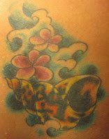 Lexie Kelly, the swim coordinator for the Flowers Sea Swim in the Cayman Islands, describes her tattoo, “I got this done on the north shore of Kauai [Hawaii]. To me, it signifies how important it is to focus on the small and simple and beautiful things in life. There is nothing more amazing than nature itself and the ocean – plumerias and seashells – happens to be something I am very passionate about since I have a strong love for swimming.
