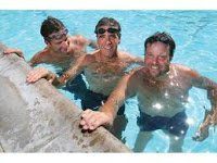 An engaging duo of marathon swimmers Chris Dahowski (on right) and David Hartmire (middle swimmer) of Swim 22 were both interviewed on the Simon Gowen Triathlon Radio Show.