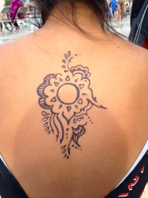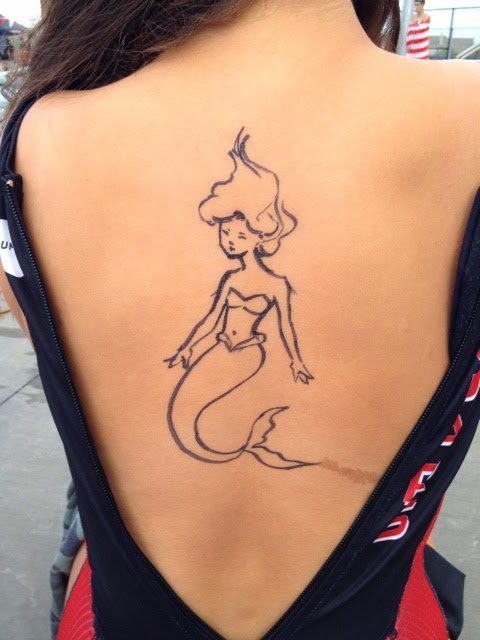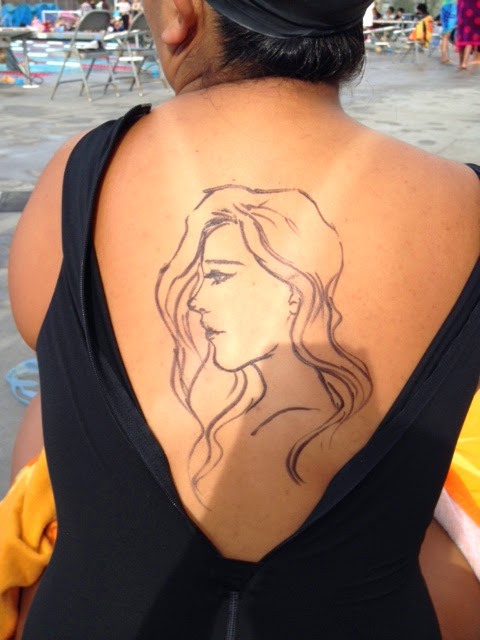I usually draw random things that symbolize something for each swimmer,” she explains. “For a teammate who swims butterfly, I draw a butterfly. But I have also drawn a gypsy on the boys and done many tribal tattoos.”