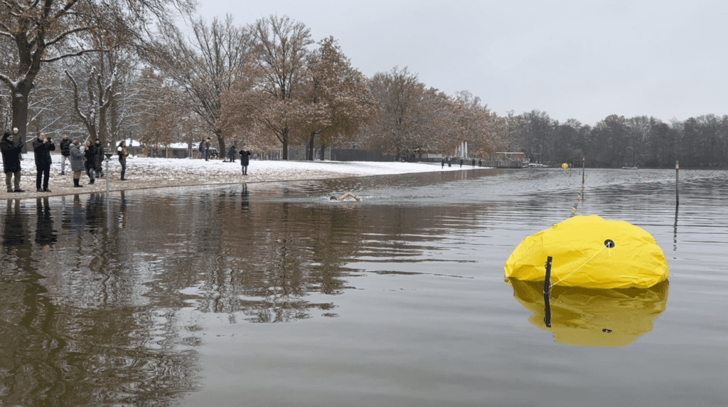 Jim Dreyer swam 275 meters pulling a 27-ton ferry across Newport Harbor in Southern California for Stan Lee’s Superhuman Showdowns