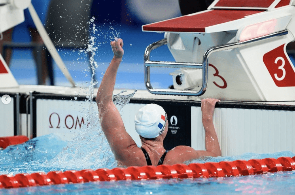Earlier this week in Paris, she won a silver medal in the 1500m freestyle, finishing in 15:40.35 for her adopted country of France. She has a shot of reaching a podium position in the 800m freestyle this week.