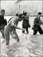 Upper photo shows Greta Anderson finishing her historic Catalina Channel swim by the Long Beach Press Telegram.