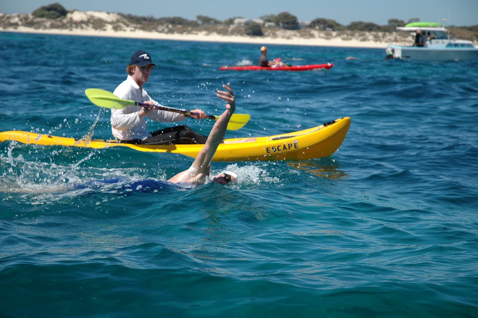 Palfrey: The kayakers escort me. The medical team looks after all the medical needs of me and the crew. The handlers feed me, change and recharge the shark shields, send information to shore, organizing illumination at night. I keep them very busy. I need to add that they are also very supportive and positive during my swim.