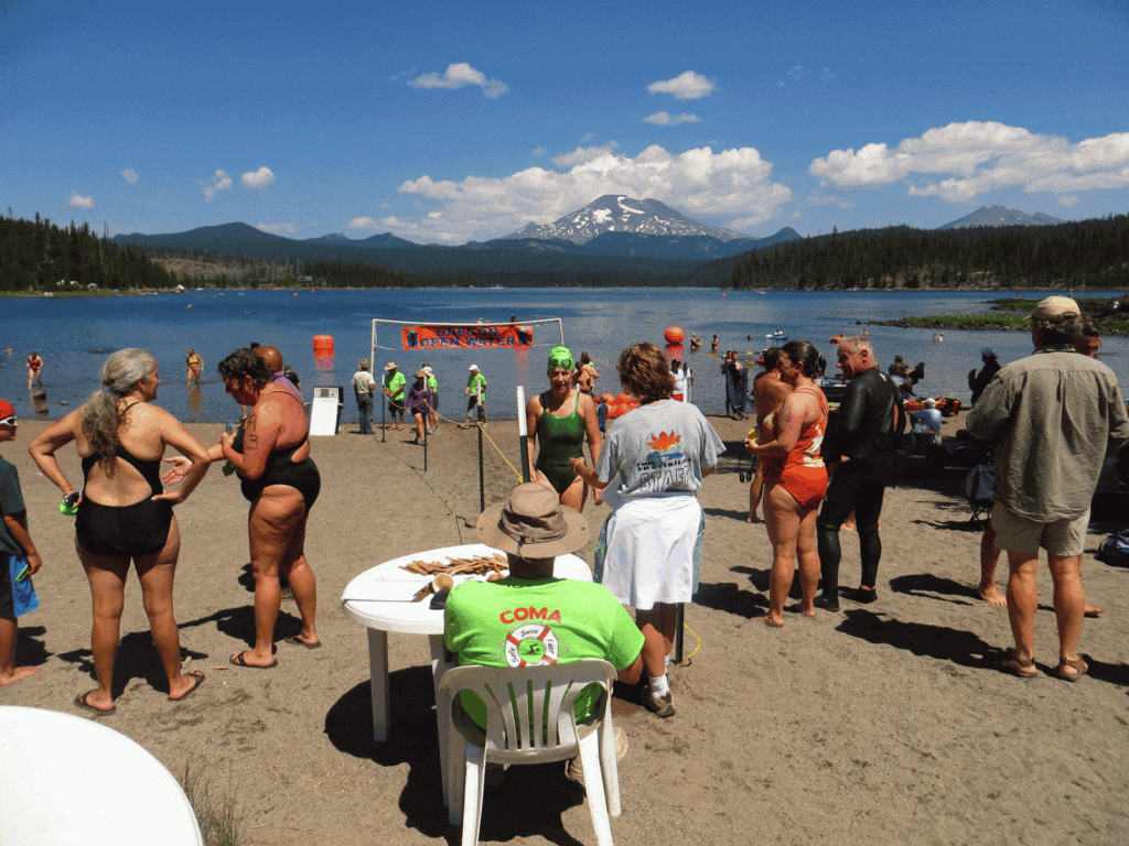 At one of America’s greatest celebration of open water swimming, the Cascade Lakes Swim Series in Elk Lake in Oregon, there are special competitions for the most fit and most enthusiastic athletes. In addition to offering 5 races (0.5 km, 1 km, 1.5 km, 3 km, 5 km) over a 3-day weekend, the Cascade Lakes Swim Series, participants may enter any or all of the five swims in the clear mountain lake at 4,900 feet (1,500 m) above sea level.