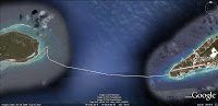 The Google map shows the 4.88-mile route taken by Felix Ebanks, Matthew McKinley, Bill McFarland, Andrea Roach and Kate Alexander between Cayman Brac (island on right) and Little Cayman (on left) in the Cayman Islands in 2010.