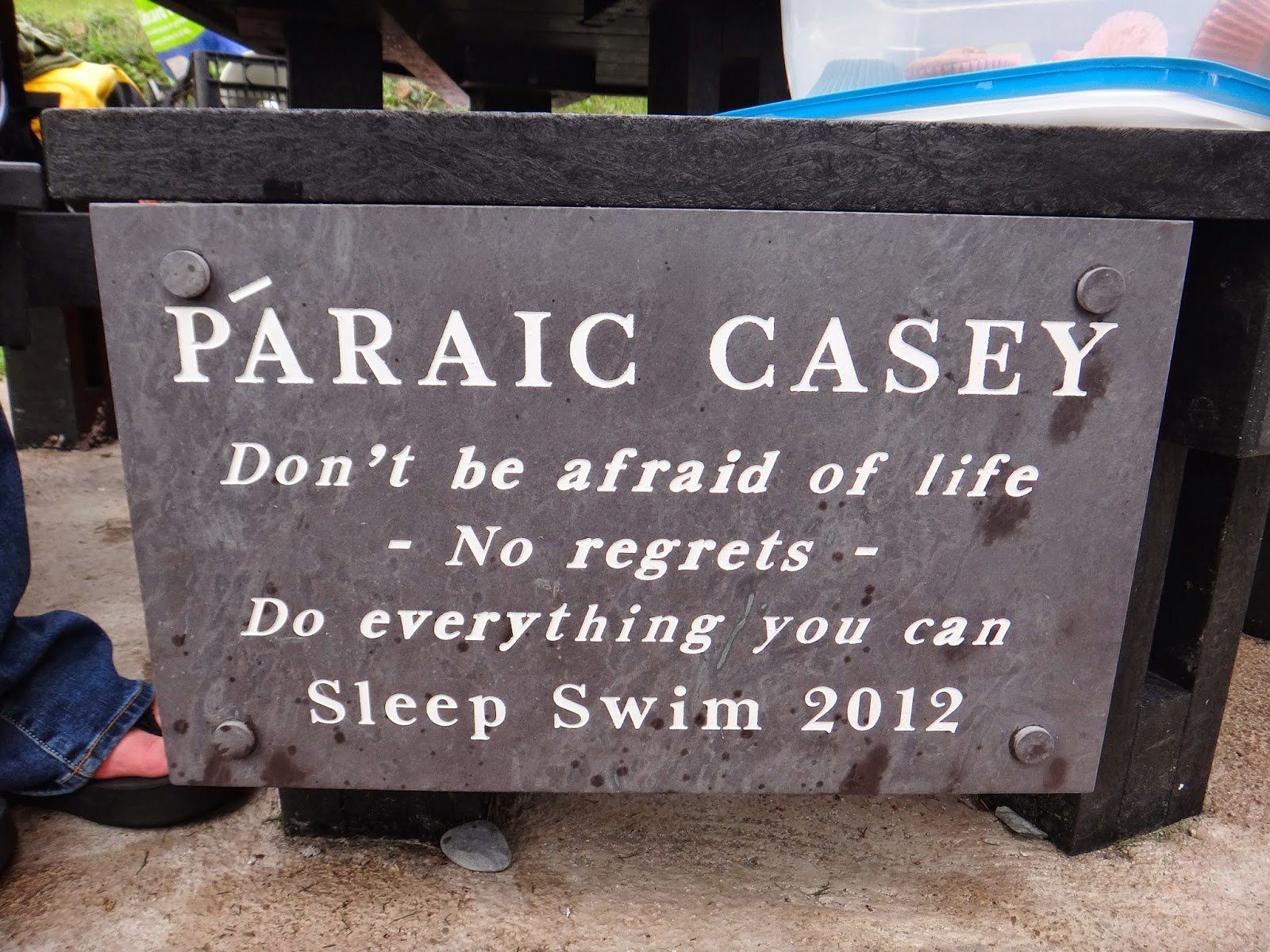 34. Páraic Casey Memorial at Sandycove Island is a memorial plaque in honor of Páraic Casey, a 45-year-old open water swimmer from Co Cork, Ireland who passed away half a mile off the coast of France in July 2012after swimming for more than 16 hours in the English Channel.