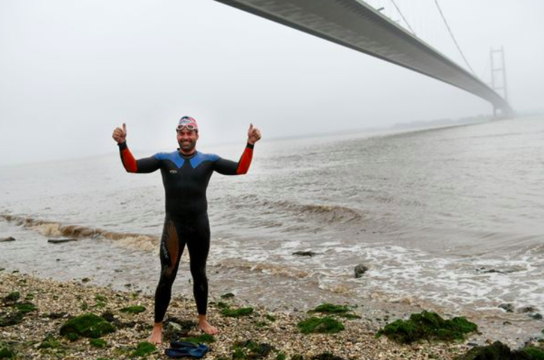 He explained the unprecedented 3.7 km course in the North Sea inlet on the east coast of England on July 27th as he swam near the Humber Bridge, “I started on the north bank and swam to the south bank and back again.”