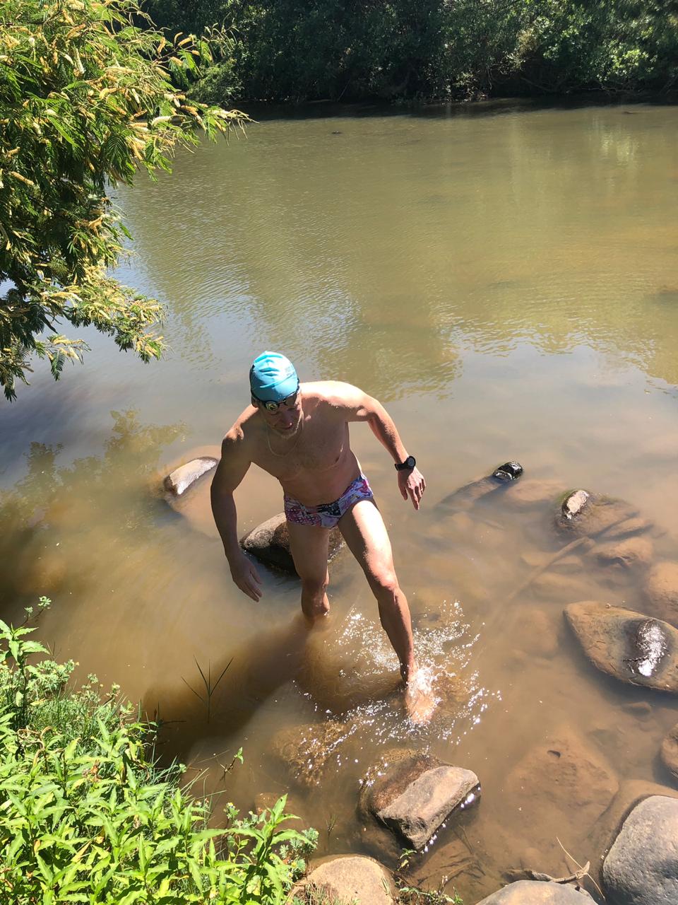Yesterday, he completed his fifth Swim for Rivers challenge on the Mtamvuna River in KwaZulu-Natal. He swam 70 km over a 6-day period, finishing at the mouth of the river just south of Port Edward.