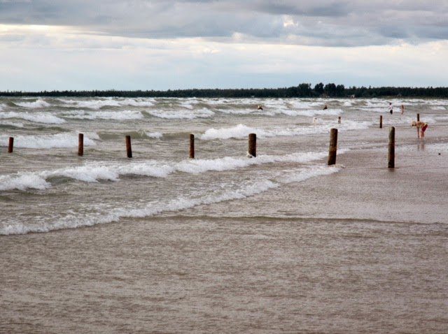 Whether it is coach Pam Lazzarotto in Sauble Beach on Lake Huron in Canada [part of its 12 miles of white sand and sandbars are shown above] or Theodore Yach getting ‘shmangled‘ during his pod’s weekly workouts on Clifton 4th beach near Cape Town, South Africa, experienced swimmers frequently know that dealing in rough conditions during practice makes tough swims more bearable on race day.