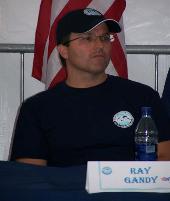 Ray described his swim to the International Marathon Swimming Hall of Fame, “The plan was to generally follow the tide down and up the sides of the island. There were times I swam with the tide and other times I did not. The first three hours we hit a very difficult 15-knot head wind with three-foot head seas between the Dumplings and Beavertail. Then, near the end, on Saturday morning, coming south after passing Conanicut Point, we had to buck a current of about half a knot and a head wind of nearly 10 knots. Having been in the water for over 18 hours, the last two hours were very tough swimming into the current and wind.”