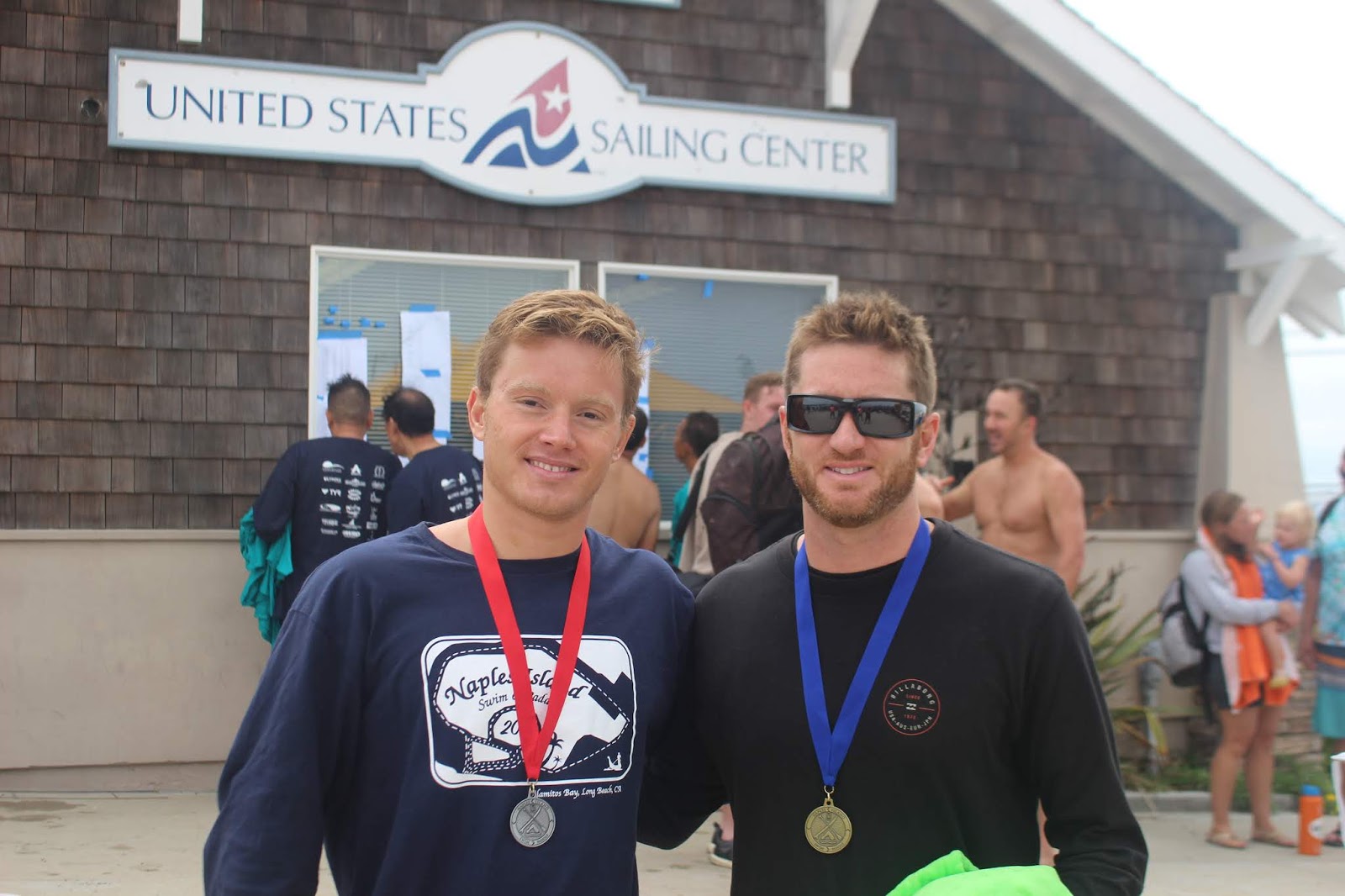 Ryan Bullock went neck-and-neck for 3 miles with Franc Aleksi around Naples Island in Long Beach, California. Back and forth they swam at the Naples Island Swim until the very end when Bullock stood up first as he ran to victory in the onshore finish.