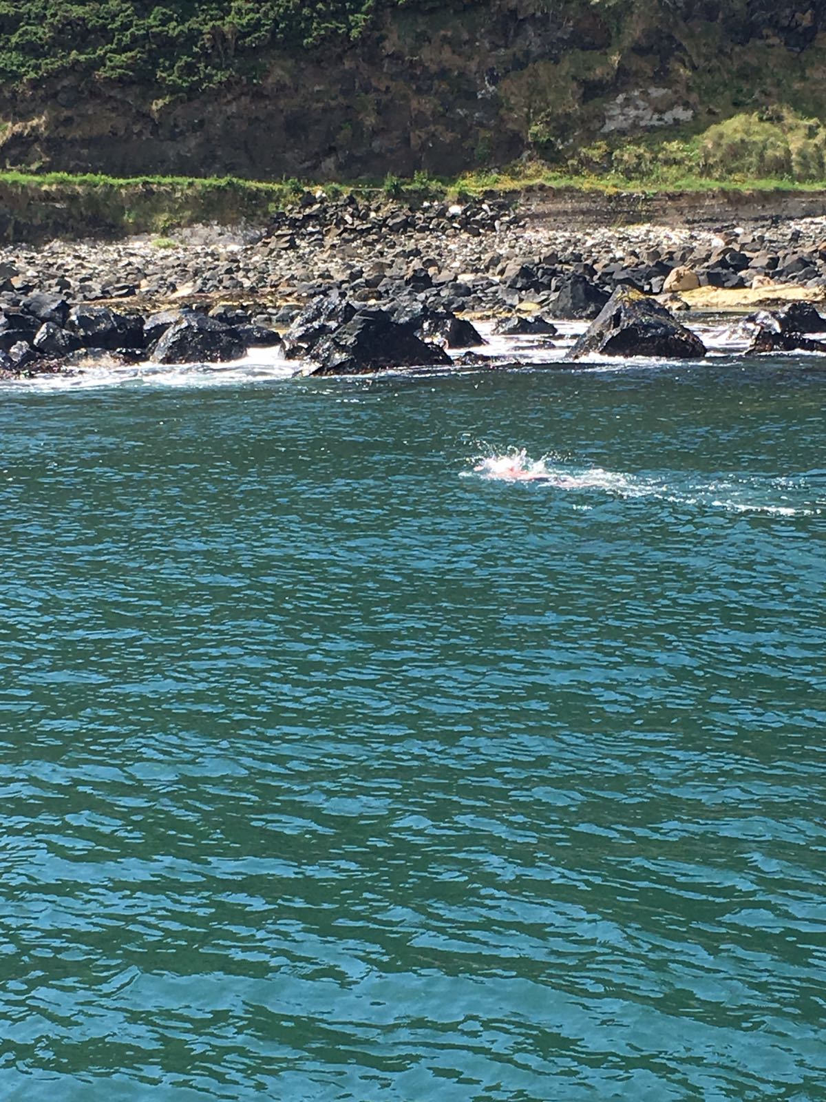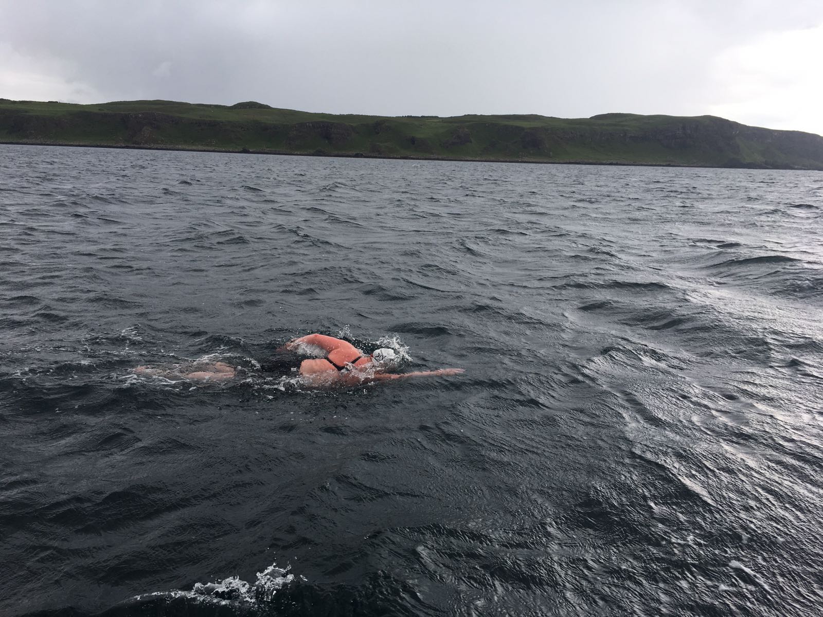 “It was flat calm at the start, a little rattle of turbulence in the middle, and flat calm at the end. Today’s swim by Swiss swimmer Sabrina Wiedmer made landfall on the shores of Ballycastle after completing the 10 km swim across the Rathlin Sound in a time of 2 hours 9 minutes and 31 seconds in the 10.5°C (50.9°F) waters.