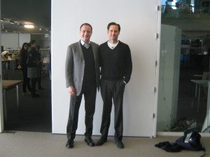 Salvatore Cimmino and Professor Hugh Herr of the Harvard-MIT Division of Health Sciences (shown below with Salvatore), and Technology Director of the Biomechatronics Group, and Professor Ken Goldman, Head of Industrial Liaison Program and Corporate Relations, met at MIT in Boston where the Italian disabled open water swimmer and the innovative entrepreneurial professors discussed the economic viability of providing prosthetic legs throughout the world.