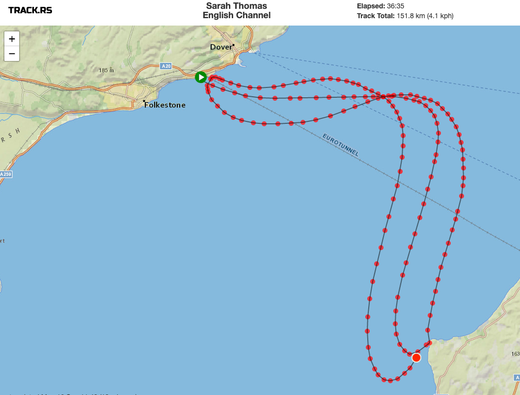Swimming world records in the pool are usually broken by tenths of a seconds and track records by similar amounts. Records in extreme and endurance sports are similarly set by relatively incremental amounts. But Thomas is en route – especially if the conditions hold – to absolutely crush the three-way 100.5 km crossings performed by Jon Erikson (38 hours 27 minutes in 1981), Philip Rush (28 hours 21 minutes in 1987), Alison Streeter (34 hours 40 minutes in 1990), and Chloë McCardel (36 hours 12 minutes in 2015).