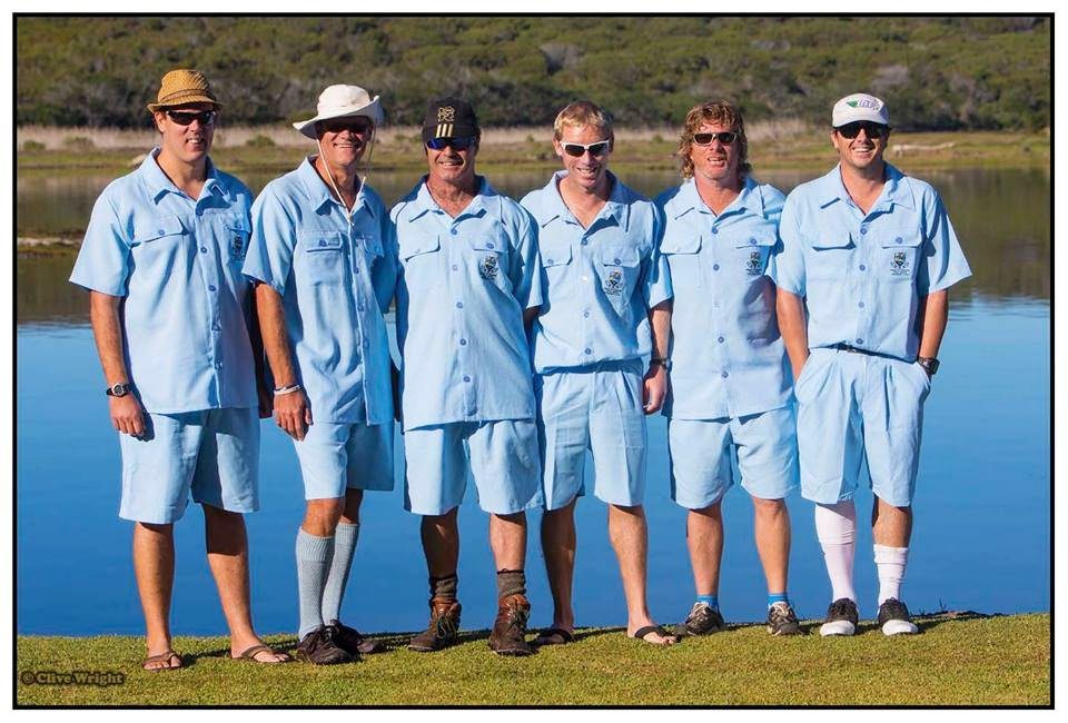 The representatives of the WWW Club wear traditional Safari Suits to their open water swims in South Africa.