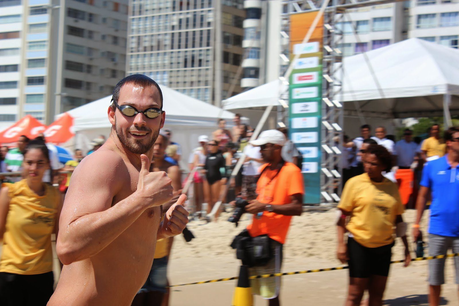 Xavier Desharnais of Canada prepped for tomorrow’s 3 km international team relay competition by participating in today’s 4 km ocean swim at the King and Queen of the Sea competition on Copacabana Beach.