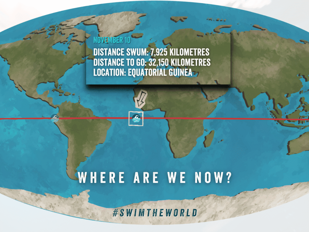 Jack Hudson gave the first week’s update, “So far, 262 active teams submitted distances. Collectively, we have swam 7,925 kilometers or 20% of our target – and have 32,150 kilometers left to circle the world.“