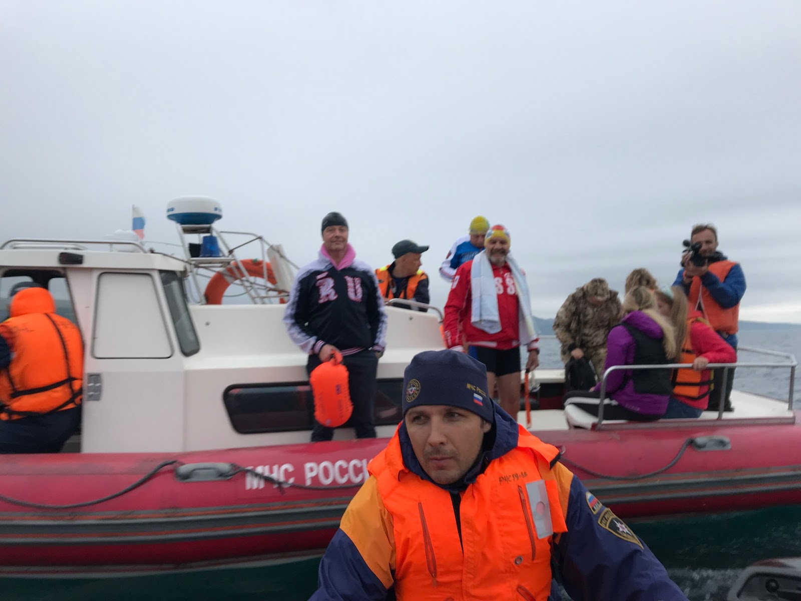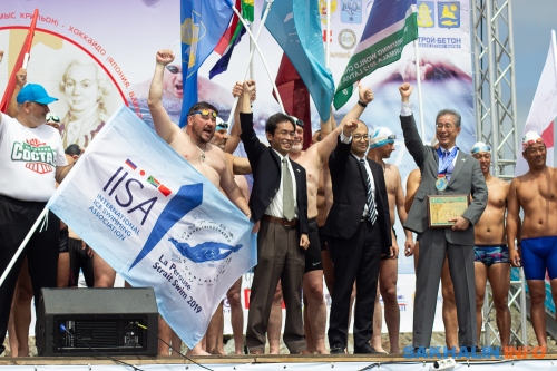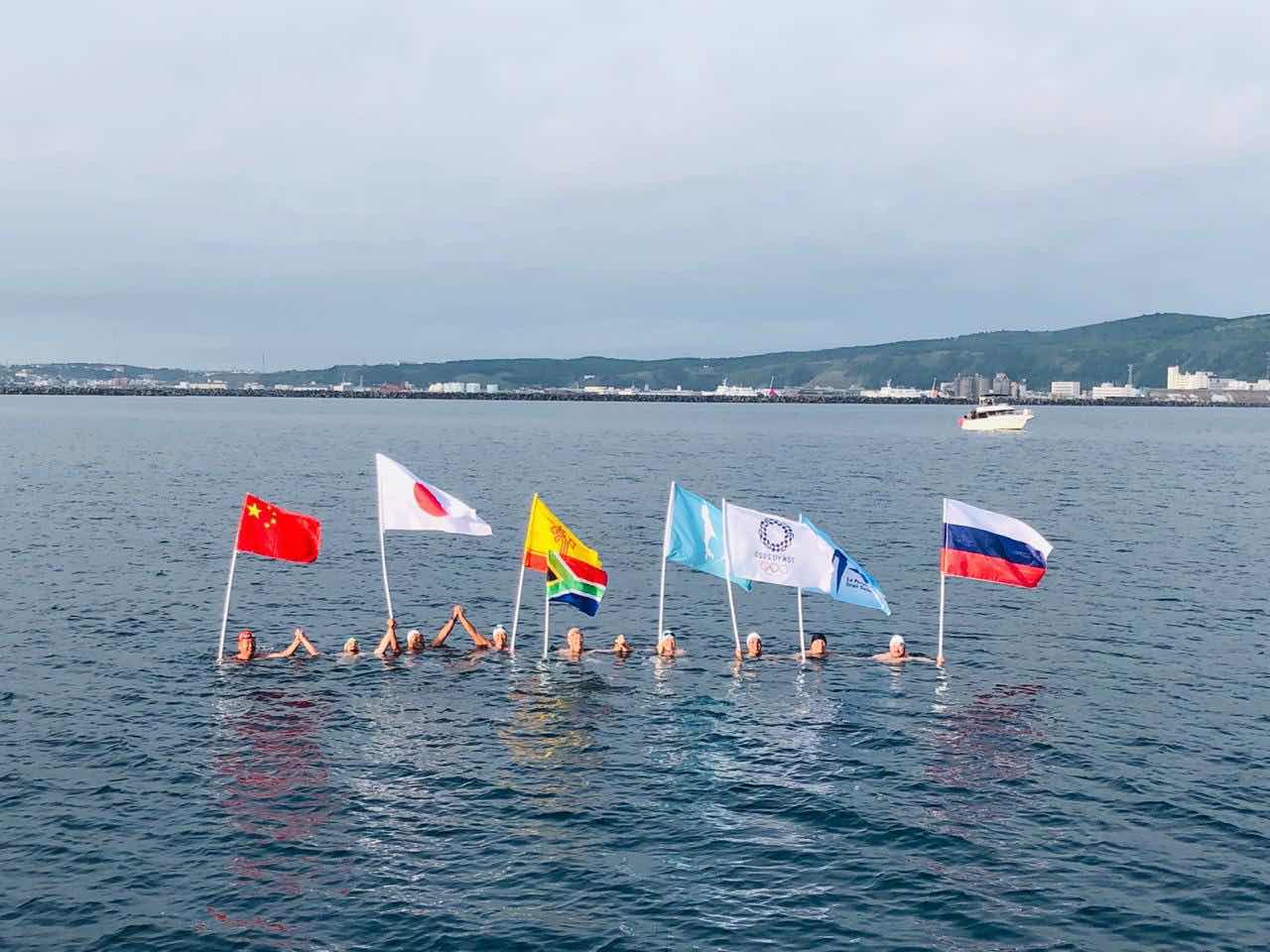 Alexander Brylin, one of the world’s most renowned ice swimmers and one of its most active ambassadors, provided photos from the cross-border channel relay through the La Pérouse Strait between Sakhalin, Russia and Hokkaido, Japan.