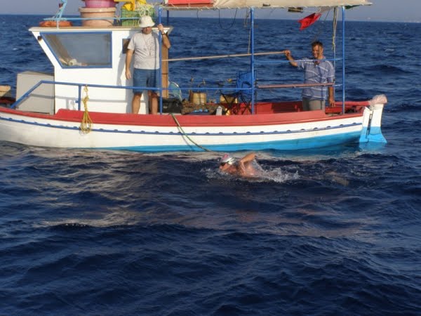 Mauro was followed by Dimitrios Archakis (7:58) and Panos Mpadouvanis (8:13) while two other special solo attempts where held under ideal conditions. Manyoki Attila from Hungary swam valiantly for 25 hours, completing 68 of the 90K in his unprecedented triple-crossing, but he retired early due to stomach problems.