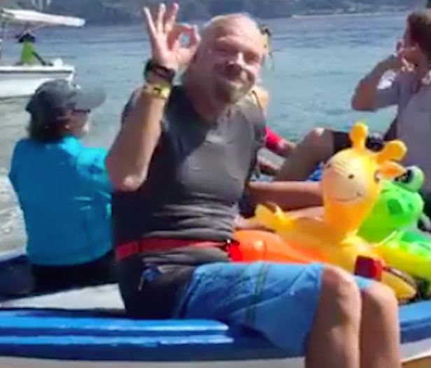 After recovering from a head-first, high-speed cycling crash on the British Virgin Islands, Branson and Grenier attracted hundreds of thousands of dollars and social media hits in their charity Strive Challenge, a tandem swim that took nearly 2 hours.