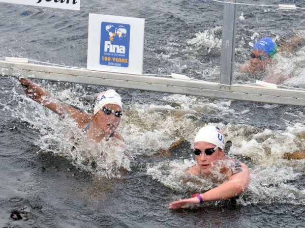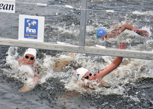 Steeve Tremblay provided post-race photos of the medalists at the recent FINA 10K Marathon Swimming World Cup race that was held in Roberval, Canada. The smiles of the medalists lit up the finish area.