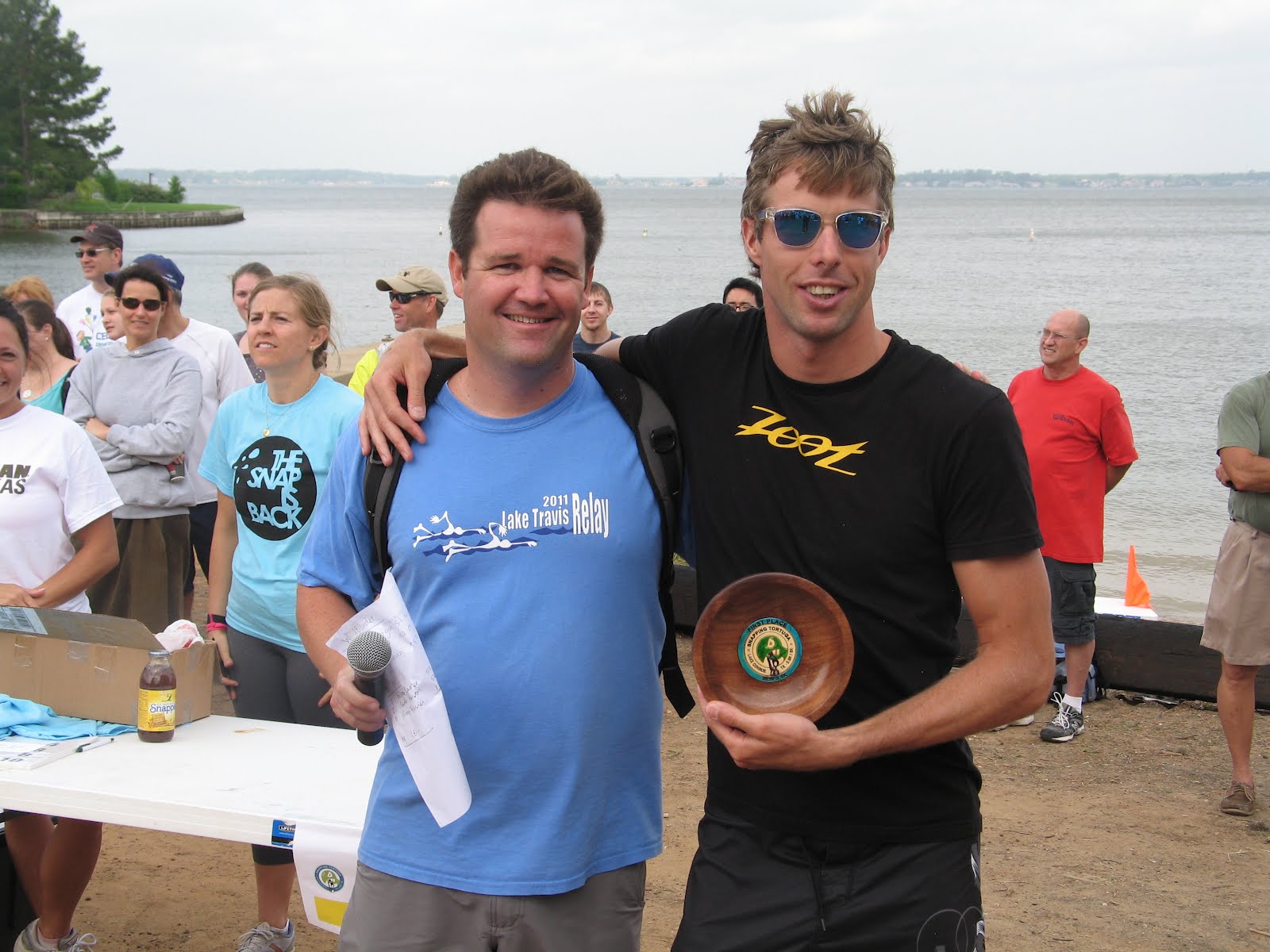 His female counterpart on the victory podium was 2008 Olympic Trials qualifier and former University of Texas swimmer Traci Van Matre with a time of 55:24 over the flat lake course.
