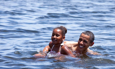 Many American Presidents golf, some recent Presidents jog, but whatever you think of his politics, there has not been a President since President John Adams (the second president of the US) who has enjoyed the open water like President Obama. On his most recent vacation in Florida, the president was photographed swimming with his daughter Sasha at Alligator Point in Florida.