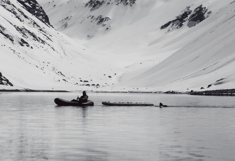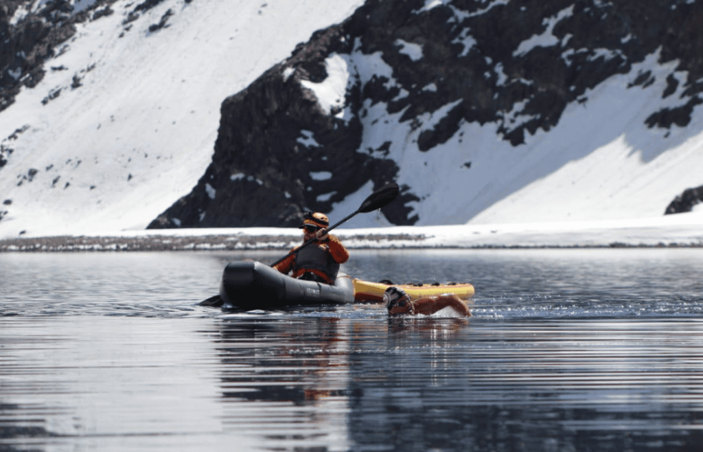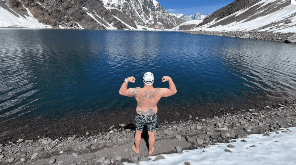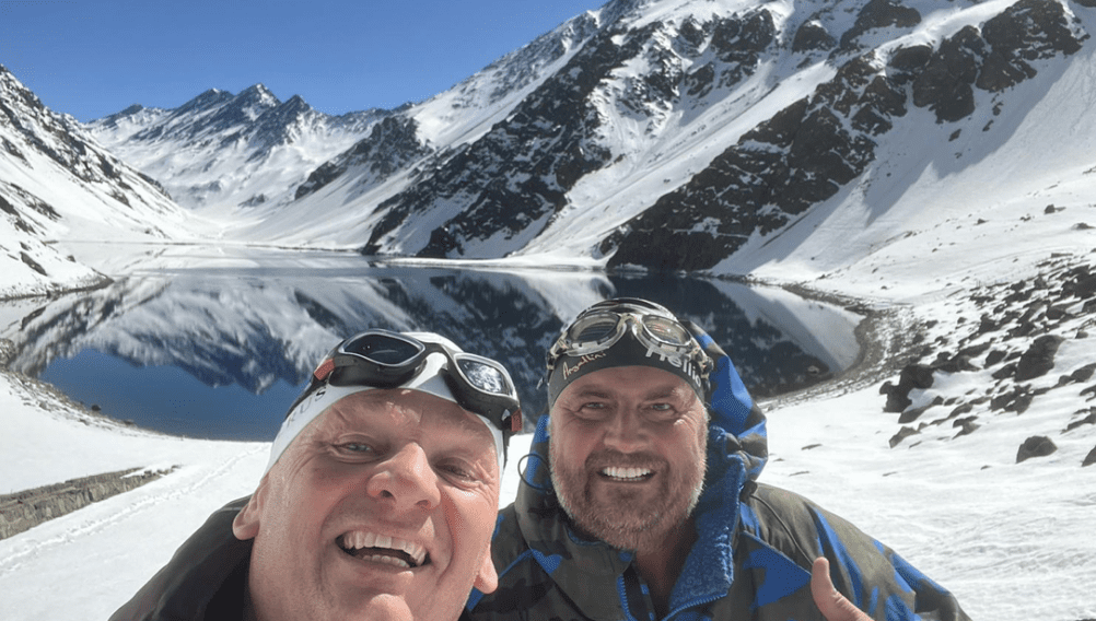 Ger ‘King Walrus’ Kennedy (@gerkennedy_swimmer) and Stève ‘The Seal’ Stievenart  (@steve_stievenart) traveled up to Laguna del Inca in Portillo, Chile. They wanted to swim at high altitude at 2.853 meters (9,360 feet) above sea level, located in the high mountains of the Andes, close to the border with Argentina.