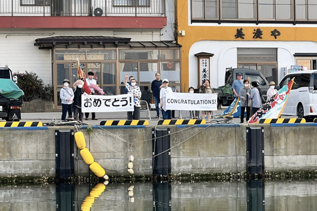 Back on the boat, Kelly hugged me for warmth, Mallory joined in, and we all sat there — shivering, laughing, celebrating. Ishii-san, Maya, the captains… it was all love. Then came the port celebration — the town cheering, Japanese ladies grinning ear to ear, hearts full. We did it. By the grace of God.