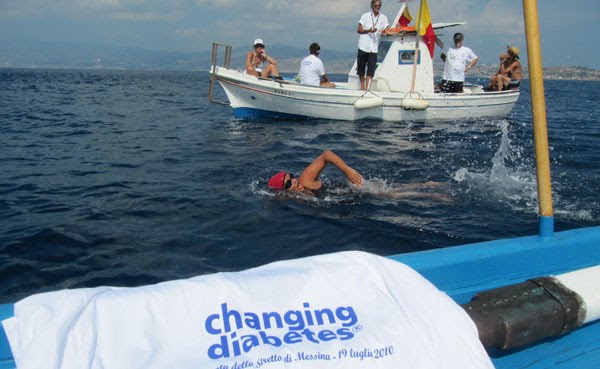 In July, Giovanna Finocchiaro (see above) swam for Changing Diabetes. After 40 years of a sedentary lifestyle, Giovanna decided to change her life and prove to herself and other diabetics that they can live better than before. She finished in 1 hour and 46 minutes including time spent for an insulin injection after her last stop. “Although she had to have contact with other people during the injection and hang on to the boat while the doctor was assisting her, we decided to accept this exception and include her swim in our ‘gold book’“.