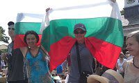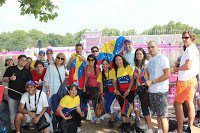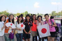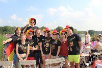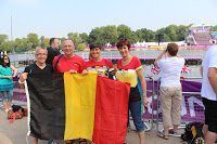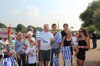 Many groups were colorfully outfitted in specially designed shirts or hats, and many wove their country flags in support of their favorite athletes.