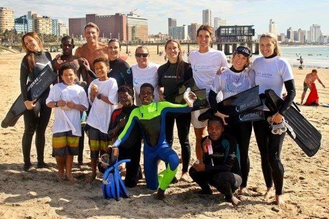 I am Water Ocean Conservation Trust hosted a snorkel day at Vechies Pier with the aim to teach the kids about the importance of ocean conservation. The day started off with a short educational talk on the effects of litter and pollution in the sea, followed by a beach clean-up before taking the children through a series of stretches and free diving, surfing, and ocean swimming.