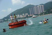 Each team had 5 members and an escort boat. Each swimmer raced 20-minute shifts for the first rotation with 10-minute intervals thereafter until the race finishes in Deepwater Bay.