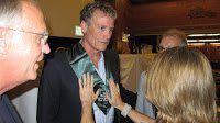 Skip Storch, a 2009 inductee in the International Marathon Swimming Hall of Fame, photographed fellow inductee Ned Denison talking with a fan at the 2012 Global Open Water Swimming Conference on the Queen Mary in Long Beach, California.
