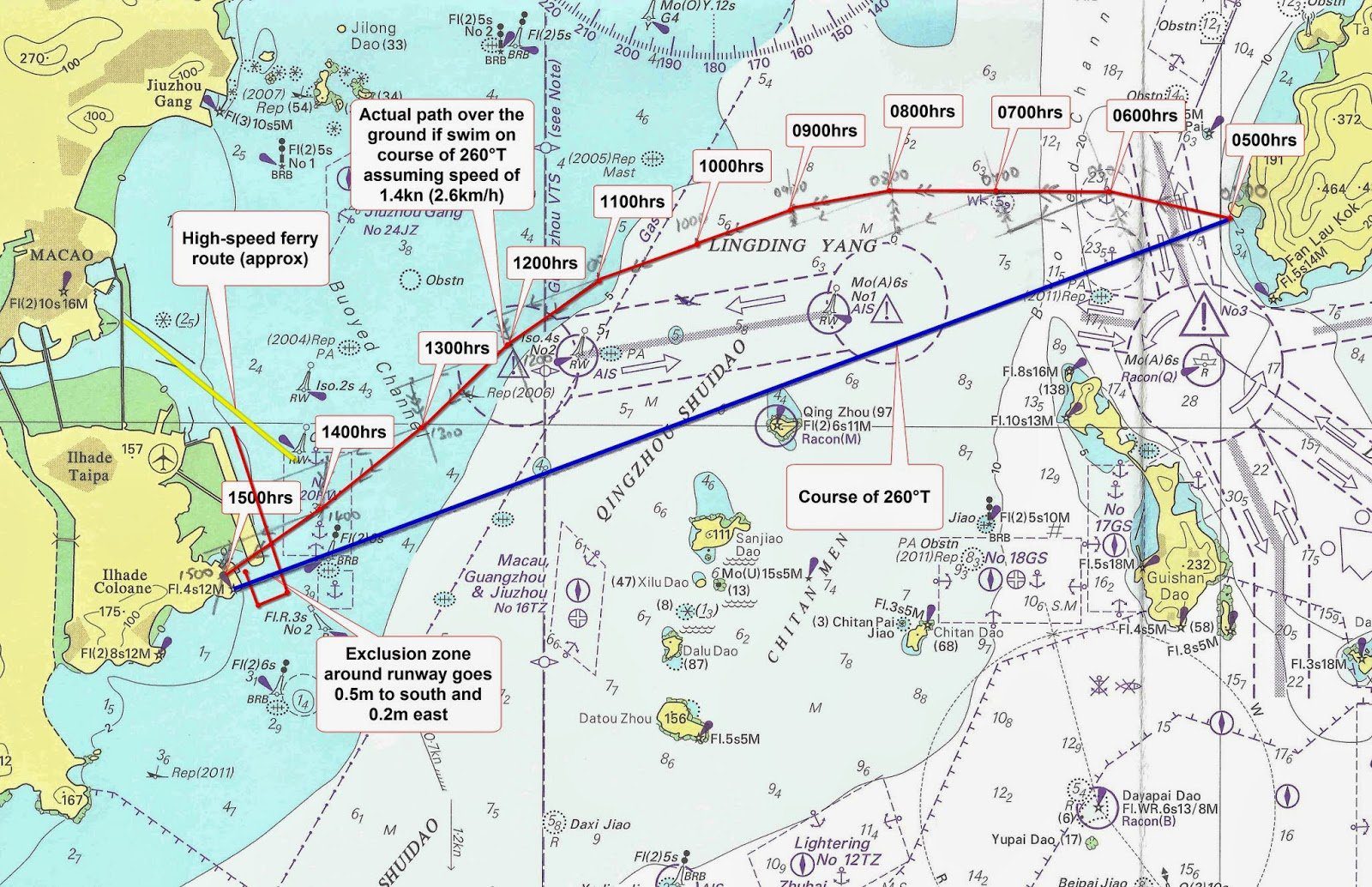 Holliday plans to swim 35 km from Peaked Hill (Kai Yet Kok), on the west edge of Lantau Island, Hong Kong to Hac Sa Beach in Macau in under 10.5 hours on his Clean Cross swim. Holliday crossed the English Channel in 2011 as well as accomplished other long swims around Ireland and the United Kingdom. “My swimming style as more tortoise than hare.”