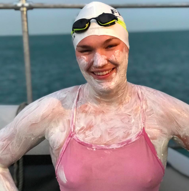 But she is also building up her ocean swimming and marathon swimming resume while doing some good. “This Thursday just before midnight, I will jump off of a boat and into darkness at Catalina Island. From there, I will attempt to make the roughly 32.3 km swim back to shore, completing the third and final swim in my Triple Crown of Open Water Swimming. I’ll be swimming in support of the Rotary International Foundation’s Polio Plus program to end polio all around the world.