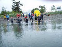 “We had a great clinic today with about 20 Sitkans attending. Seven of these intrepid souls went on to swim a lap or two of a nearly one-mile course in incredibly ugly conditions. Although they chose to don wetsuits with the water temperature dropping to the high 40’s with the air the same, it’s an exciting day for Alaskan open water. The swimmers would like to start a local open water swim club.”