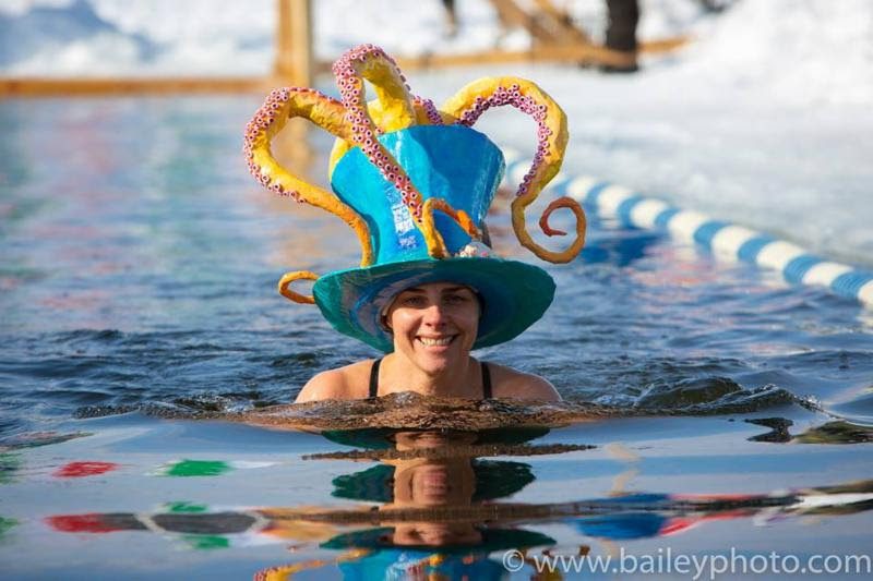 The events range from 25m to 200m in a two-lane 25m pool cut in the ice of Lake Memphremagog. The winter swimmers enjoy the opportunity to challenge themselves to Siberian-like conditions and negative swimming. Event director Phil White explains, “Water temperatures are typically 30.5°F or -0.8°C (microscopic slush) with the air temperatures generally range from -10°F to 35°F (-23°C to 1.6°C). Winds can be negligible to whipping.”