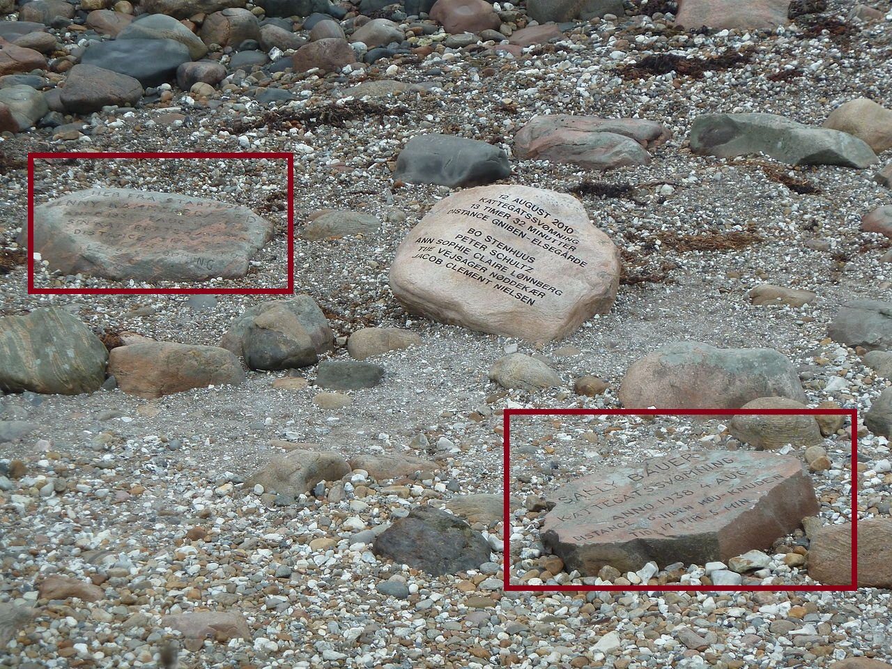 A month later on August 7th, she swam 42 km from Gniben to Grenaa across the Kattegat in 29 hours 13 minutes after she changed her medical advisor. The swim distance was later inaccurately reported as 70 km, 75 km, and later 93 km (see memorial stone below that is at Gniben Strand on Sjællands Odde). She was widely celebrated in Denmark and her swim was memorialized by a song written in her honor: Jenny – Du er et Eventyr (or Jenny – You are an Adventure in English).