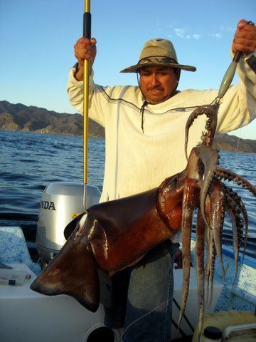 But she will not be alone in the water. Humbolt squids are in the millions and come to the surface of the water at night in the Sea of Cortez.