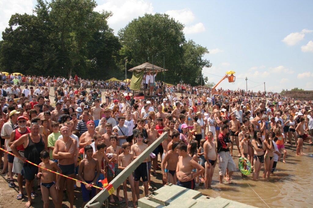 The downstream event, a professional competitive race organized by Vojislav Mijić, is held in the Sava River in Šabac, Serbia from Jarak (Јарак), a town of 2,200 people, to Šabac – many of whom come out to enjoy the efforts of the swimmers in the 19 km race.