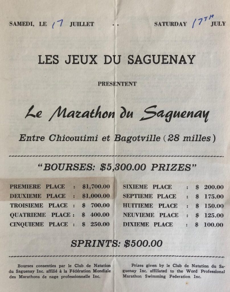 Le Marathon du Saguenay from Chicoutimi to Bagotville Sponsored by KAATSU Global, Huntington Beach, California. Le Marathon du Saguenay was a 45 km professional marathon swim held on the Saguenay River from Chicoutimi to Bagotville in the Saguenay–Lac-Saint-Jean region of Quebec, Canada. The event was sanctioned by the World Professional Marathon Swimming Federation in the […]