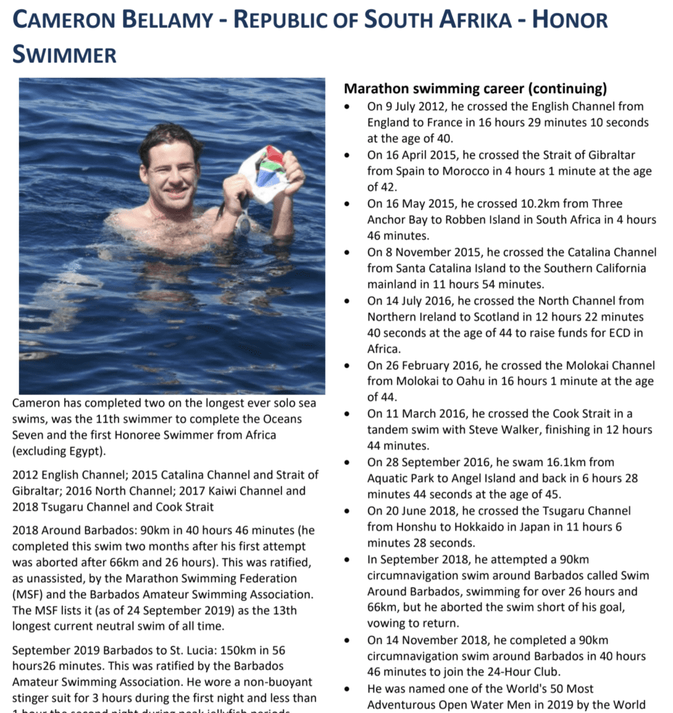 Courtesy of International Marathon Swimming Hall of Fame. The International Marathon Swimming Hall of Fame virtual induction and awards ceremony for the Class of 2020 will be held today on Saturday, May 1st between 3:00 – 5:00 pm EST (New York) where Cameron Bellamy (Honor Swimmer), Damián Blaum (Honor Swimmer), Marcia Cleveland (Honor Swimmer), Captain […]