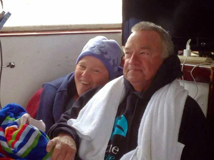 The veterans completed their Catalina Channel crossing in June 2013 in 12 hours 9 minutes. While they were swimming from Catalina Island to the California mainland, they stopped while a pod of dolphins swam around them and their escort boat.