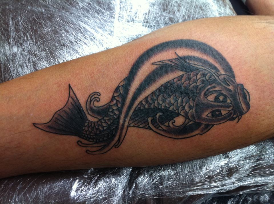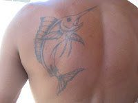 Glauco Rangel has a large swordfish covering his left shoulder and much of his back.