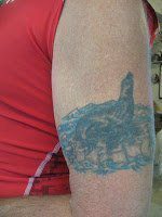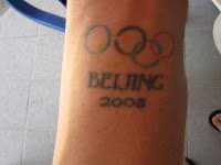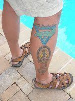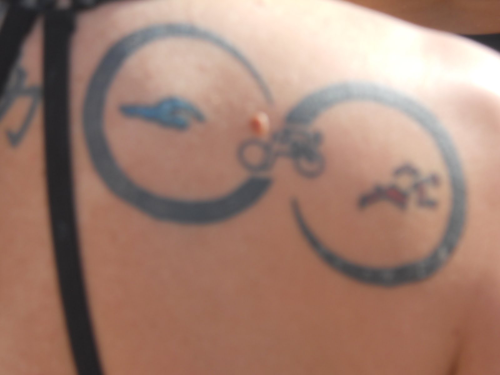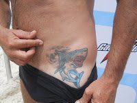 The tattoo on left adorned a swimmer at the starting line of an open water race in Fort Lauderdale, Florida.