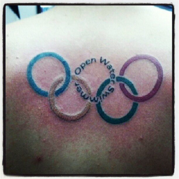 Csaba Gercsak is a two-time Olympian marathon swimmer who combined his Olympic achievements and his passion for open water swimming into one colorful tattoo on his back.