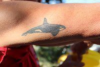 Vito Bialla (shown above) has tattoos on each arm, one of a male orca and another one of a female orca.