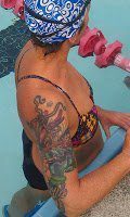 Large tattoos, small tattoos, open water swimmers of various ages and backgrounds like to adorn their arms, legs, backs, ankles, lower back with images that are meaningful to them.
