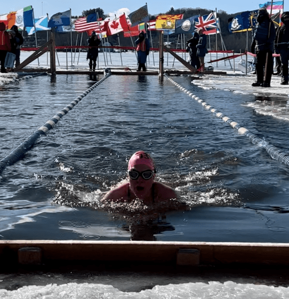 - Mary Ann Best (61): a two-time Ice Miler from Gary, Indiana who swims in Lake Michigan, IISA bio here